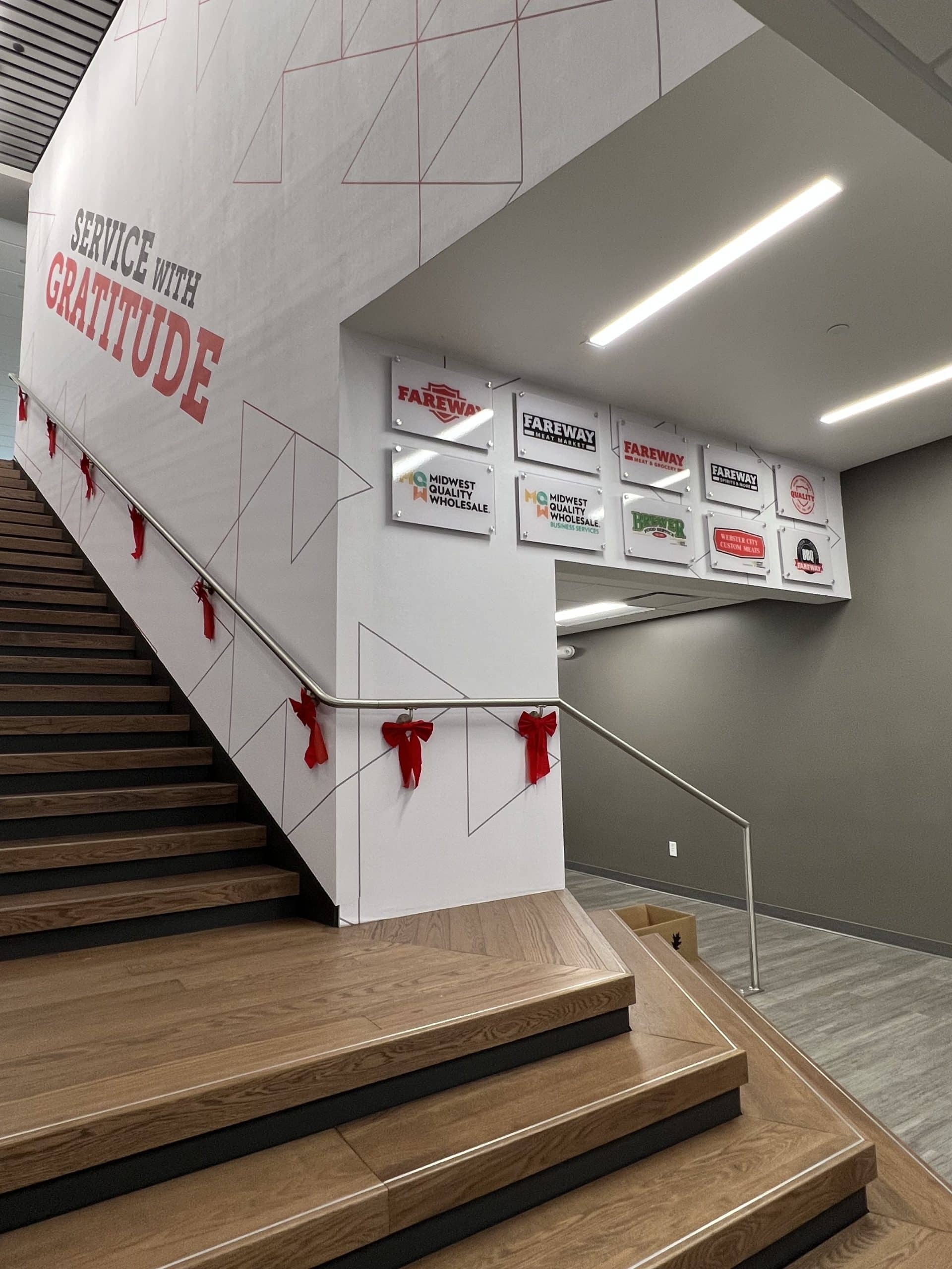 The completed signage program enhances the visual appeal of Fareway’s headquarters while reinforcing the company’s legacy and identity. The result is a cohesive, branded environment that embodies Fareway’s heritage and future outlook.